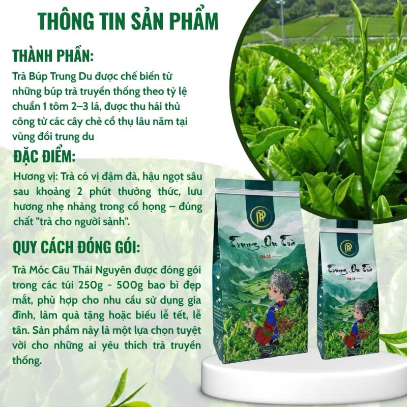 ✅ 1kg Trà Búp Trung Du Cổ Thái Nguyên – 100% búp chè trung du cổ thụ lâu năm, thu hái thủ công, hoàn toàn tự nhiên, không hóa chất.