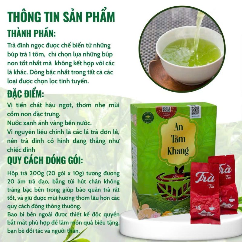 Đánh giá Trà Đinh Ngọc Thượng Phẩm – Trà Xanh Thái Nguyên An Tâm Khang – Hộp 200g (20 gói x 10g) – Tiện Lợi