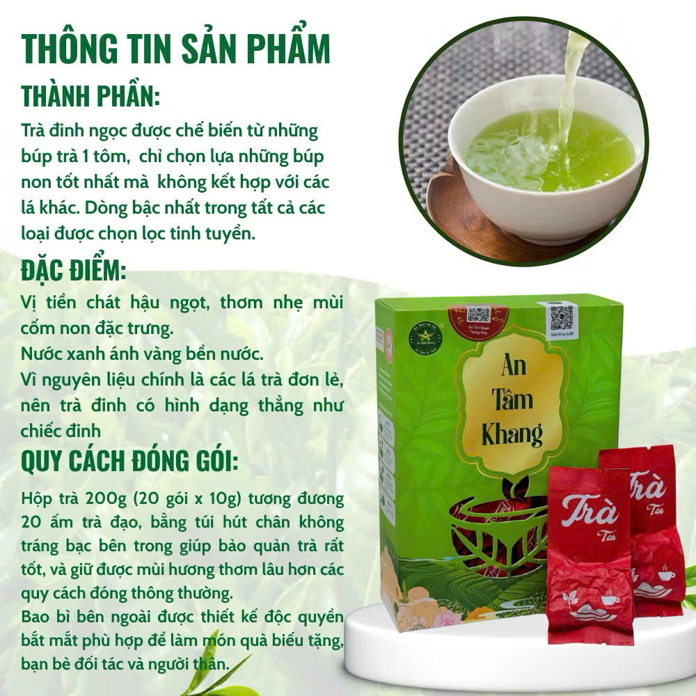 Thương hiệu: An Tâm Khang – 100% trà sạch nguyên chất, không hương liệu, không phẩm màu.
