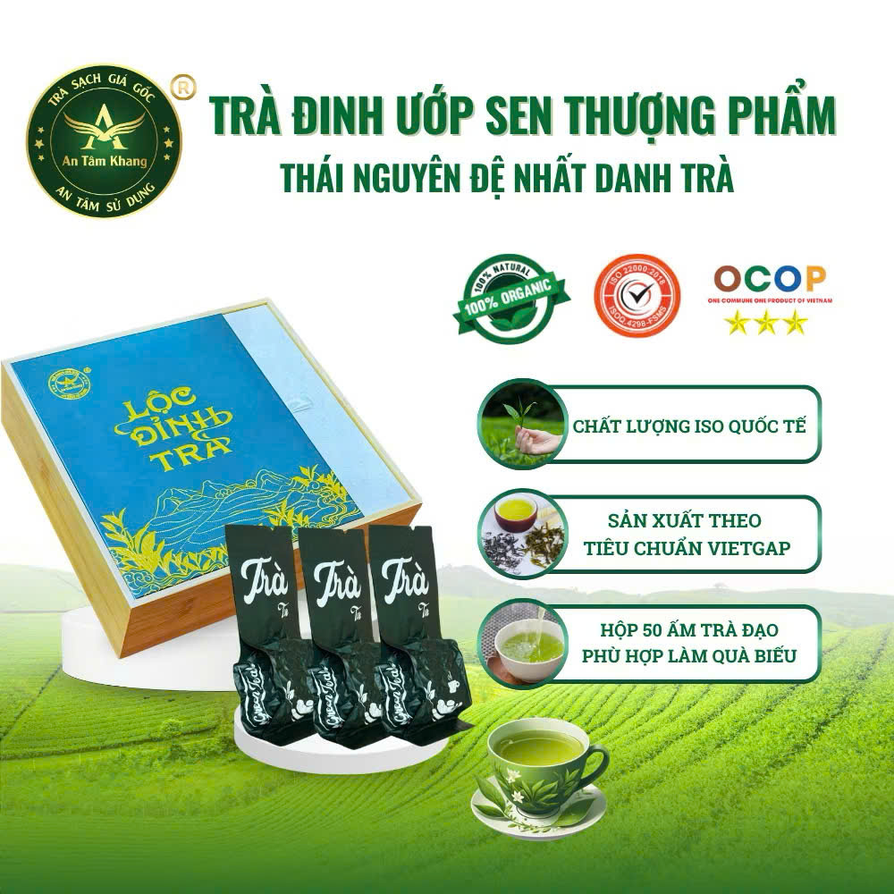 🌸 Trà Đinh Ướp Sen Tây Hồ – Trà Xanh Thượng Phẩm An Tâm Khang – Hộp 500g | 1kg – Quà Biếu Sang Trọng