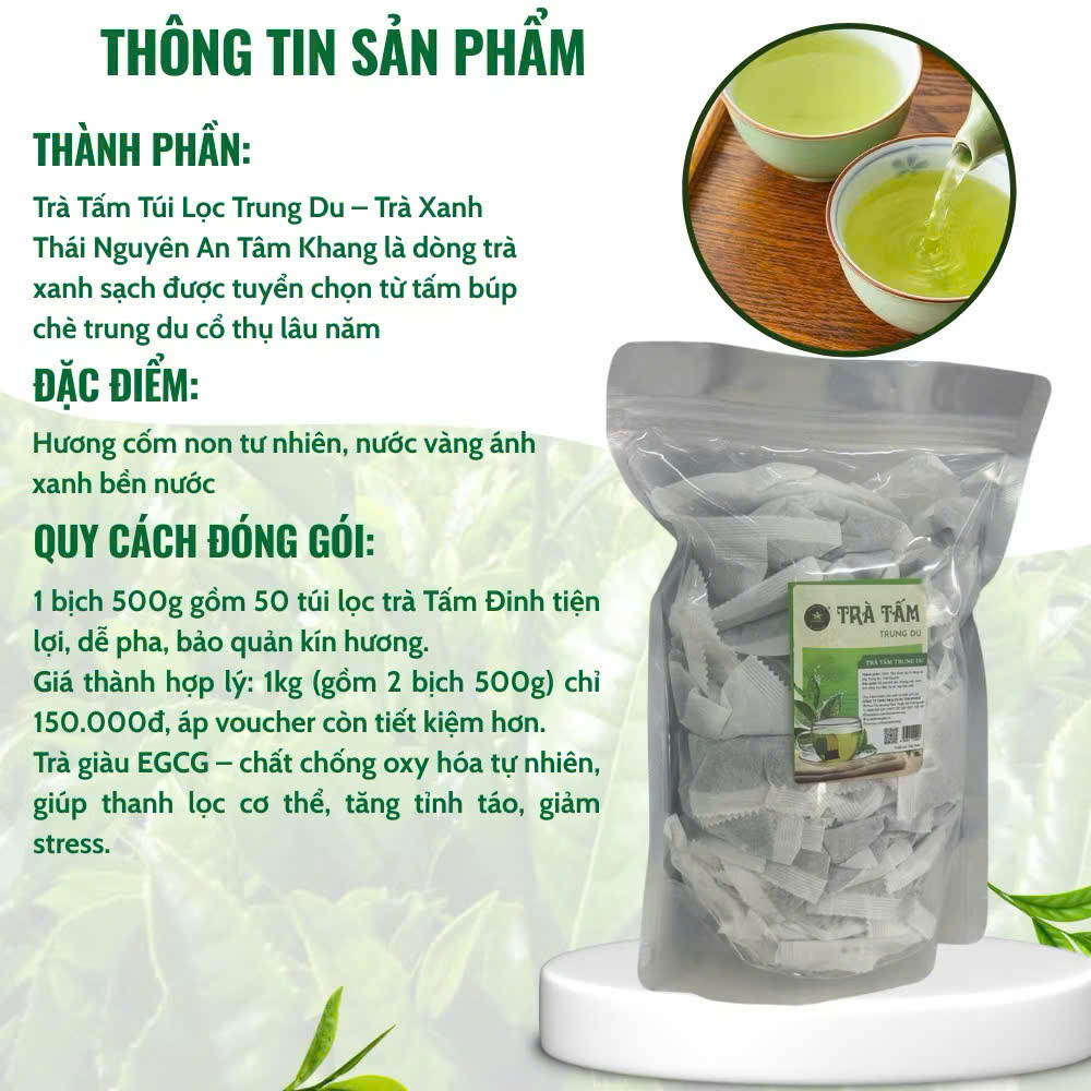 Đánh giá Trà Tấm Túi Lọc Trung Du – Trà Xanh Thái Nguyên An Tâm Khang – 500g | 1kg – Đậm Vị Truyền Thống