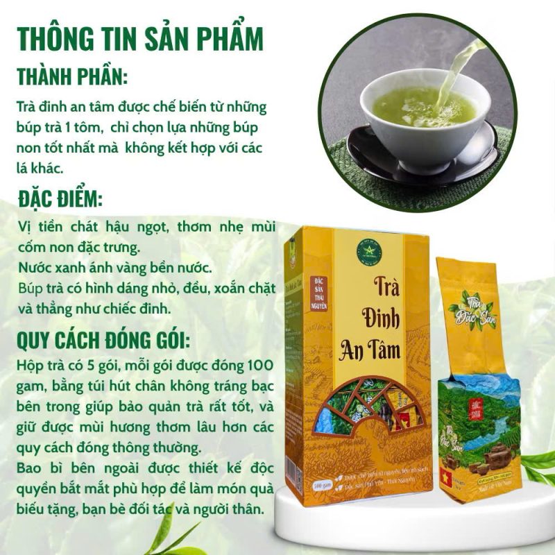 Đánh giá Trà Đinh An Tâm – Trà Thái Nguyên Cao Cấp – Trà Xanh Hộp 500g (5 gói x 100g) – Quà Biếu