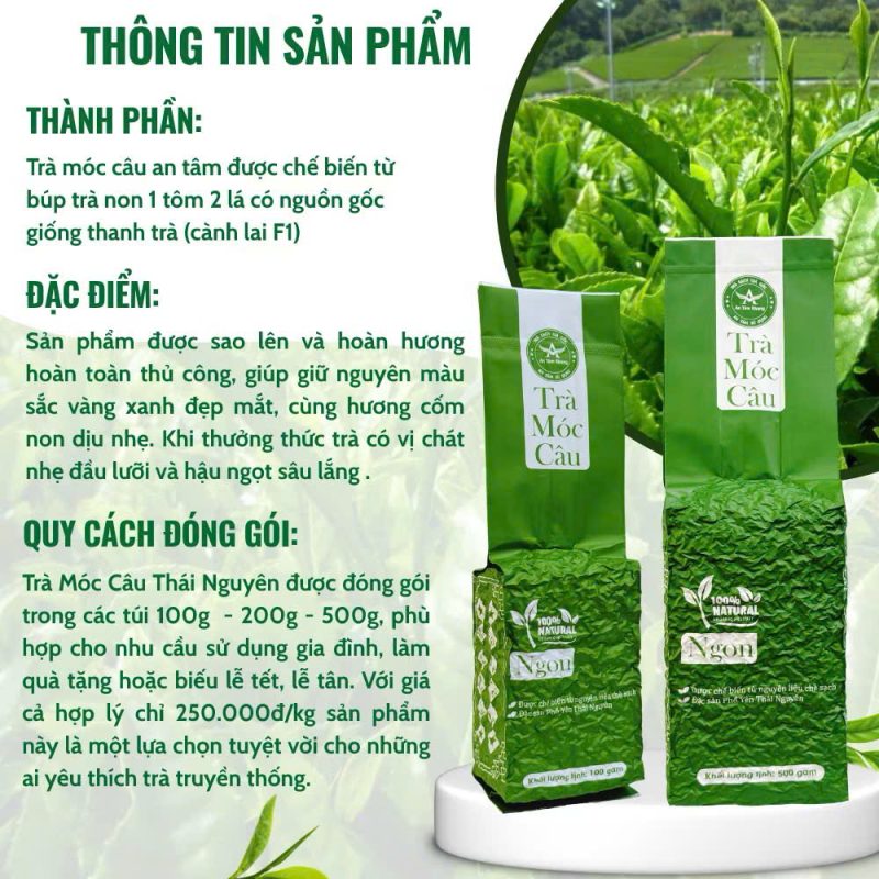 Trà Móc Câu Thái Nguyên Ngon – Trà An Tâm Khang | Chè Xanh Truyền Thống 100g – 200g – 500g – 1kg Đậm Vị, Hậu Ngọt